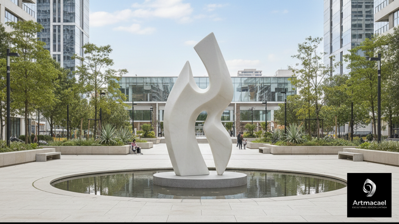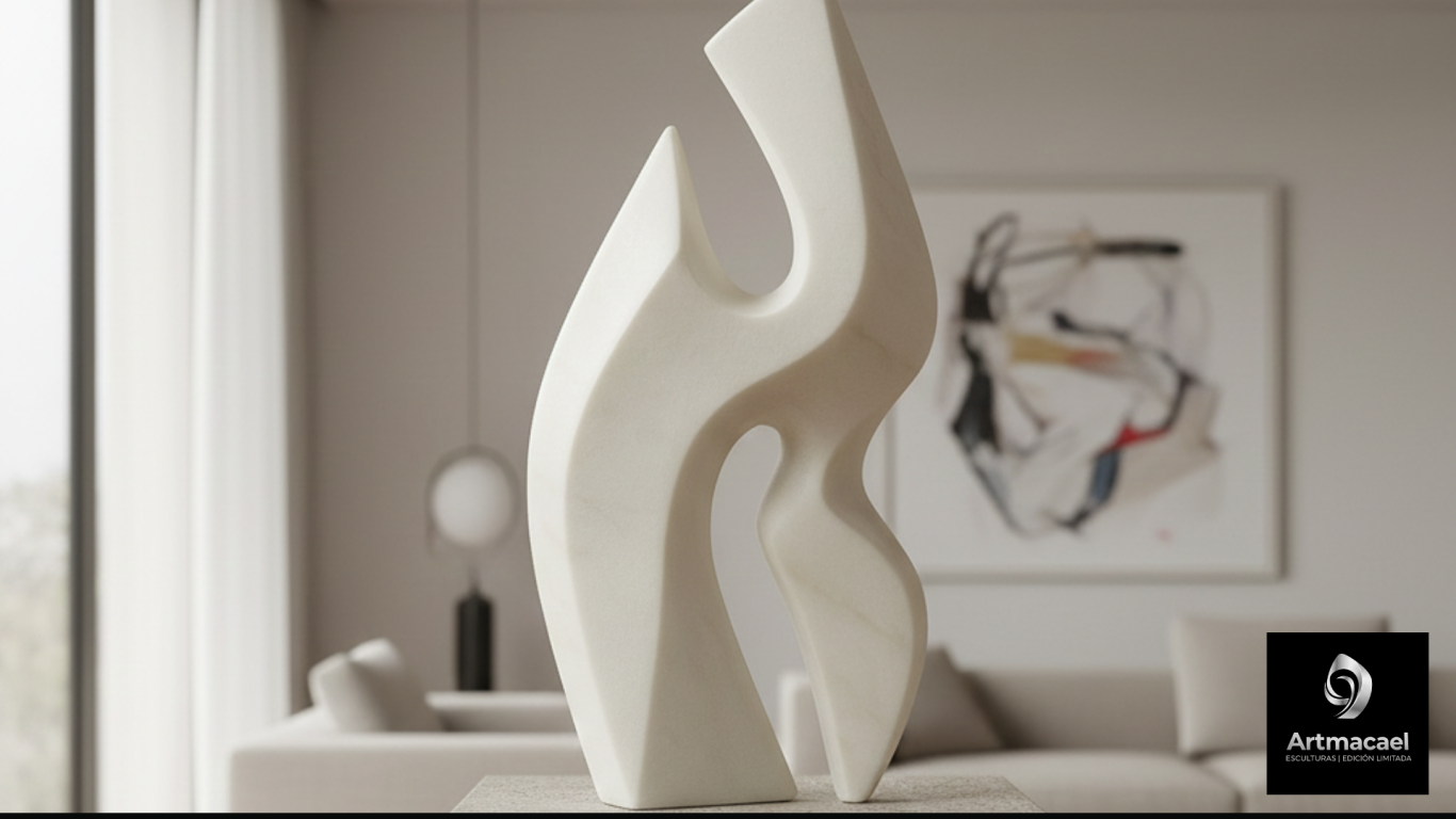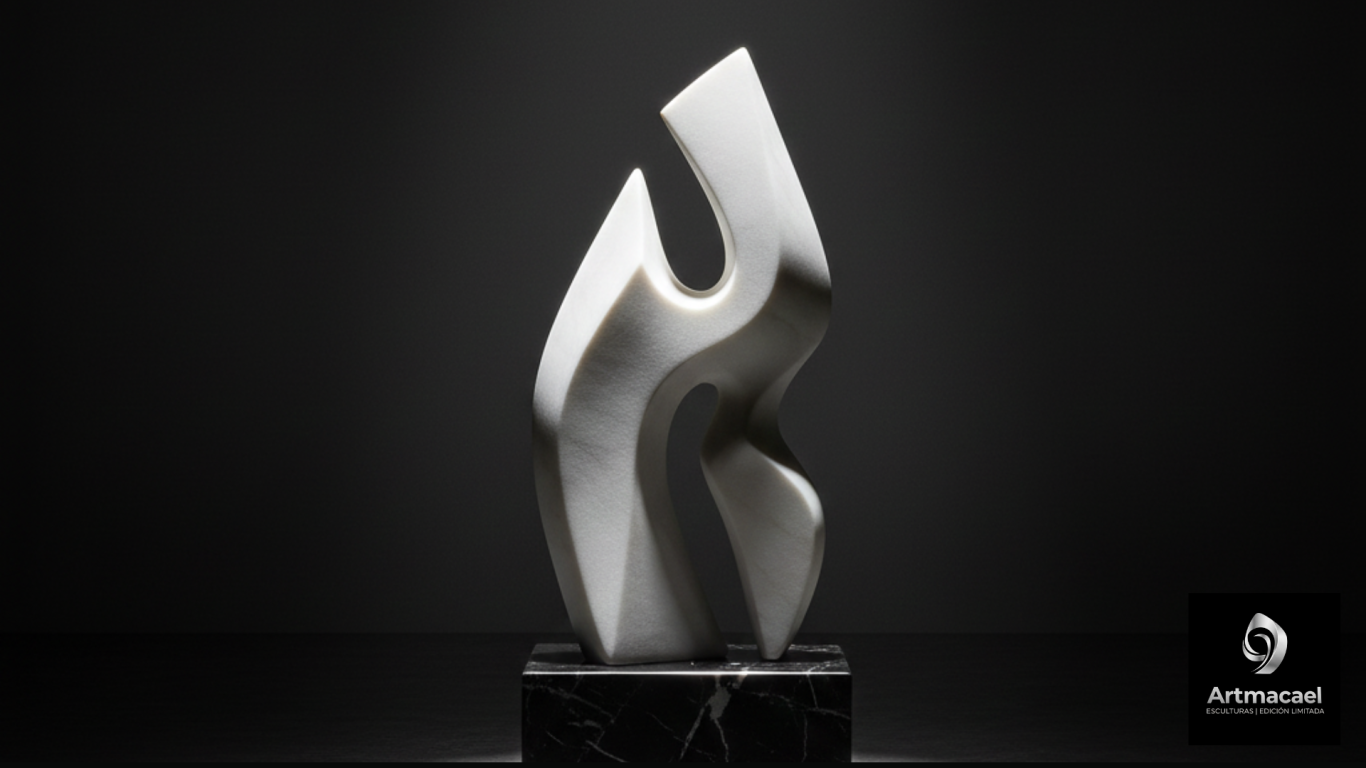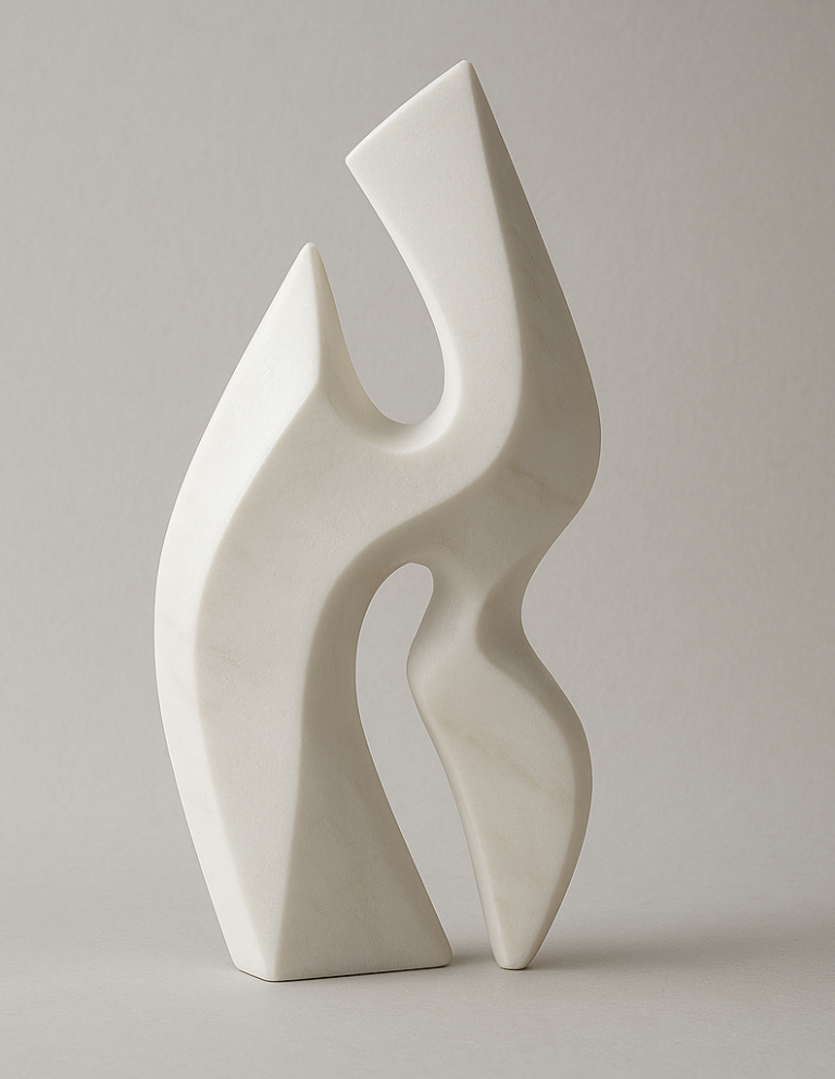 Una forma esbelta y dual donde dos elementos se entrelazan capturando el ritmo esencial de la materia. Sus líneas fluidas y sus curvas se fusionan en una danza continua de elegante movimiento y armonía. El vacío central no es una ausencia, sino una pausa, un contrapunto que dialoga con la forma y la llena de significado, creando un perfecto equilibrio.